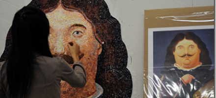 Nell’immagine, l’artista mosaicista di Work House lavora durante la manifestazione ad un mosaico rappresentante un’ opera del famoso artista colombiano Botero.