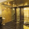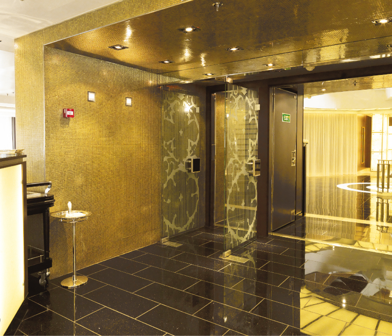 Lastre di marmo naturale in onice bianco con vetro temperato retroilluminato.
